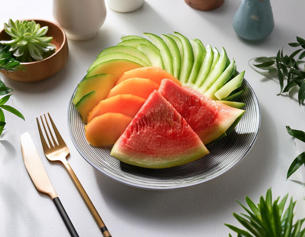 Corta una rodaja gruesa de sandía o melón y sírvela bien fría.