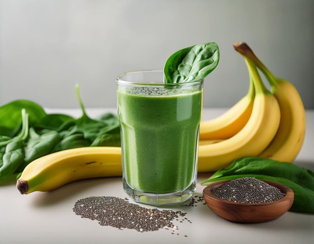Coloca las espinacas frescas, los plátanos y las semillas de chía en una licuadora.