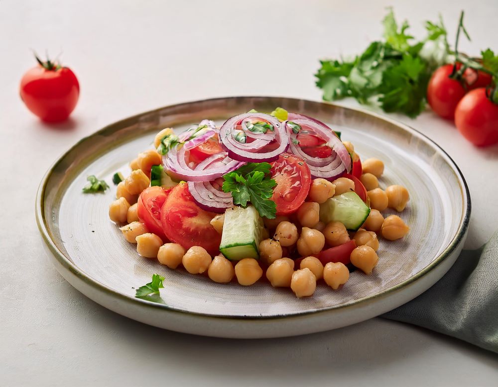 Mezcla las verduras con los garbanzos cocidos en un bol grande.