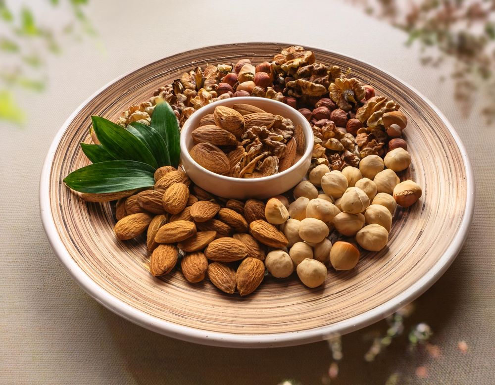 Disfruta de los frutos secos variados como fuente de energía.