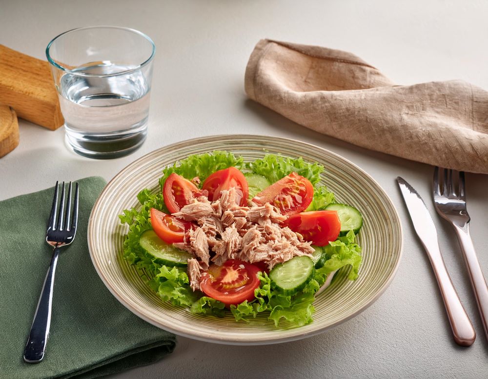 Cena: Ensalada de Atún con Lechuga, Tomate y Pepino