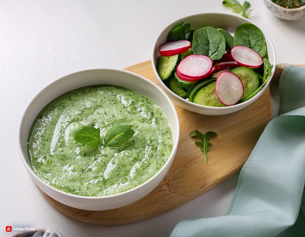 Cocina las espinacas con un diente de ajo picado y aceite de oliva. Prepara una ensalada con pepino y rábanos frescos.